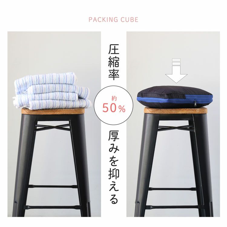 圧縮方法は簡単、衣類を収納してファスナーを閉めるだけ。