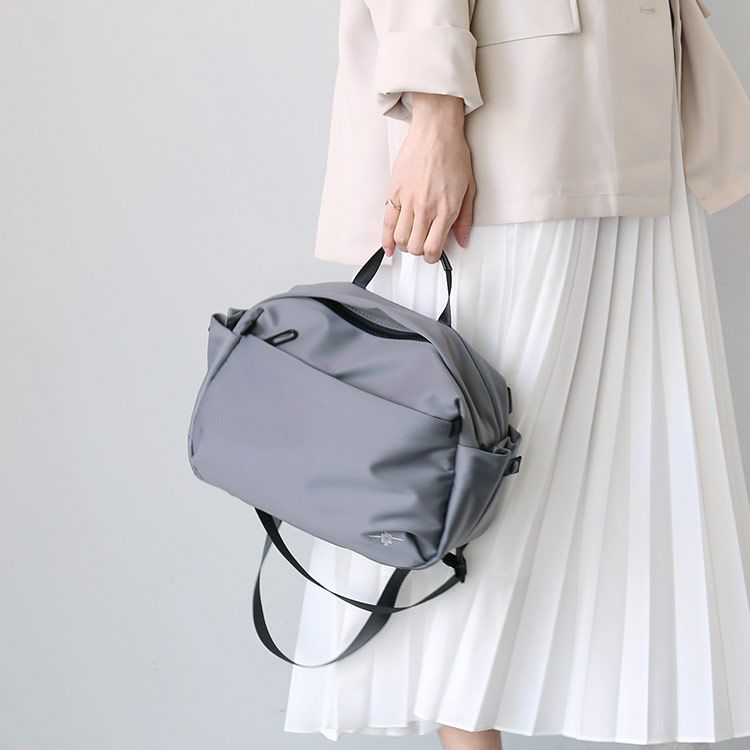 光沢感のあるシルキーなナイロン素材が、カジュアルスタイルを上品にしてくれます。