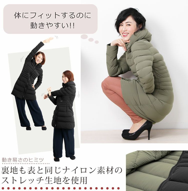 ストレッチ ダウンコート レディース 軽量 4WAY ストレッチ生地 ダウン90% Filomo 6F
