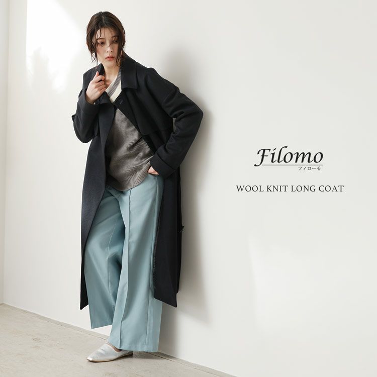 やわらかな ジャージニット ロングコート レディース テーラード ドロップショルダー コート 黒 冬 日本製 生地 ブランド Filomo 秋冬 きれいめ 大人 40代 50代 大きいサイズ プレゼント ギフト (08000195r)