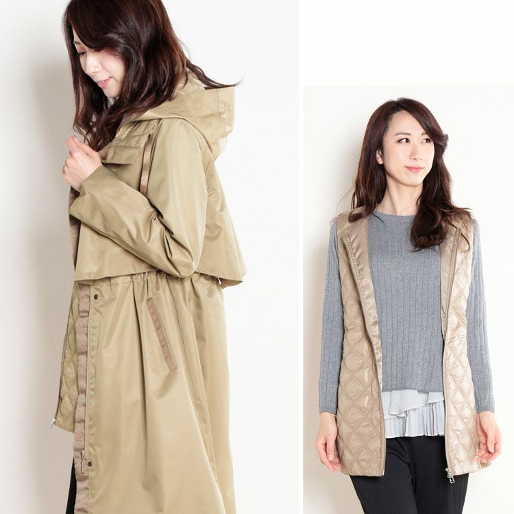 商品名:フード付き 2WAY コート ライナーベスト付き レディース