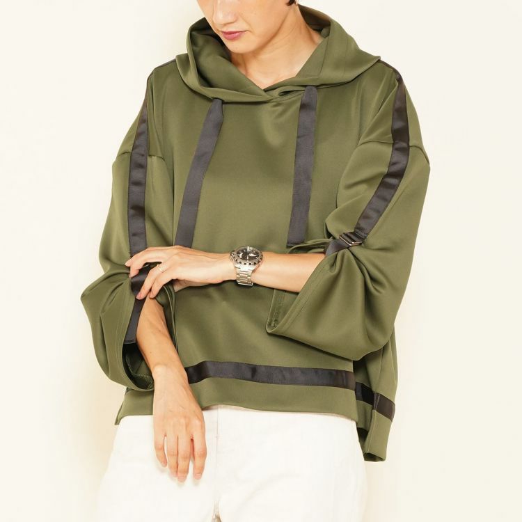 | 商品名:ダンボールニット フード付き プルオーバー パーカー 袖ライン |