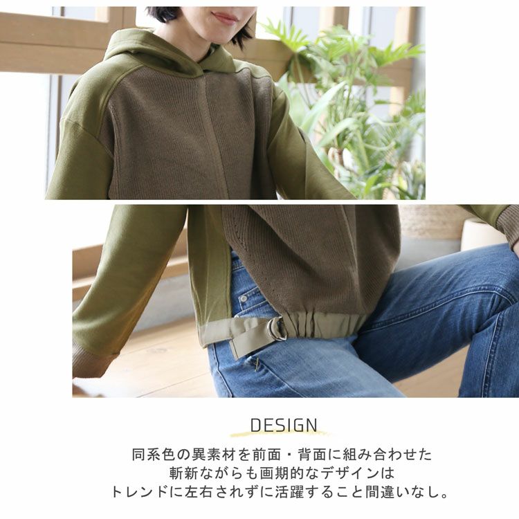 | 商品名:ニット 切替え プルオーバー フード付き |