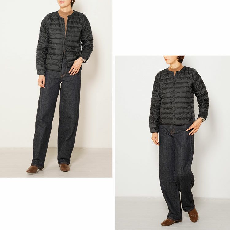 どんなコーデにもぴったり馴染むシンプルなシルエット。 ダウンなのにモコモコすることなくスマートに着用できるアウターです。 秋冬のトレンドアイテムとして定番になりつつあるライトダウン。 肌寒いけど厚手のコートを着るまでもない、 そんな時期のライトアウターとしてはもちろん、 厳しい寒さの日にコートの下に着る インナーダウンとしても大活躍できる ちょっと薄手のダウンジャケット。 様々な使い方でロングシーズン重宝するアイテムです。 腕を通した瞬間に 『え?軽っ!!』と声が出てしまいそうになる 軽量ダウンジャケットです。 ダウンはたっぷりの空気を含んでいます。 ダウンに含まれるその「空気の層」は コートの内側から体温を逃さず、 外側からの冷たい外気を遮断してくれます。 そのため人が「快適だ」と感じる 温度を保つことが出来るのです。 ジャケットの背面は裾の中央が少し長めになっています。 お尻が少し隠れて可愛らしい雰囲気になる、 トレンドデザインです。 コーデアイテム→カシミヤ 100% ストール【50cm×190cm】 レイヤードしやすいノーカラーで ハイネックやタートルネックのトップスとも相性抜群です。 裏地なしでとても軽く、ポリエステルなのでサラリと着れます。 前開きはスナップボタン×6が付いており、 表面に2つポケットが付いています。