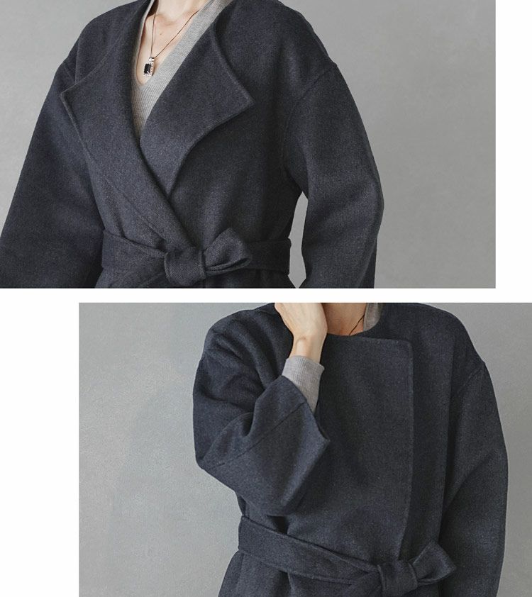 Filomo コート レディース ハンドメイド 七分丈 ダブルフェイス 一枚仕立て ウール (08000247r) 7F