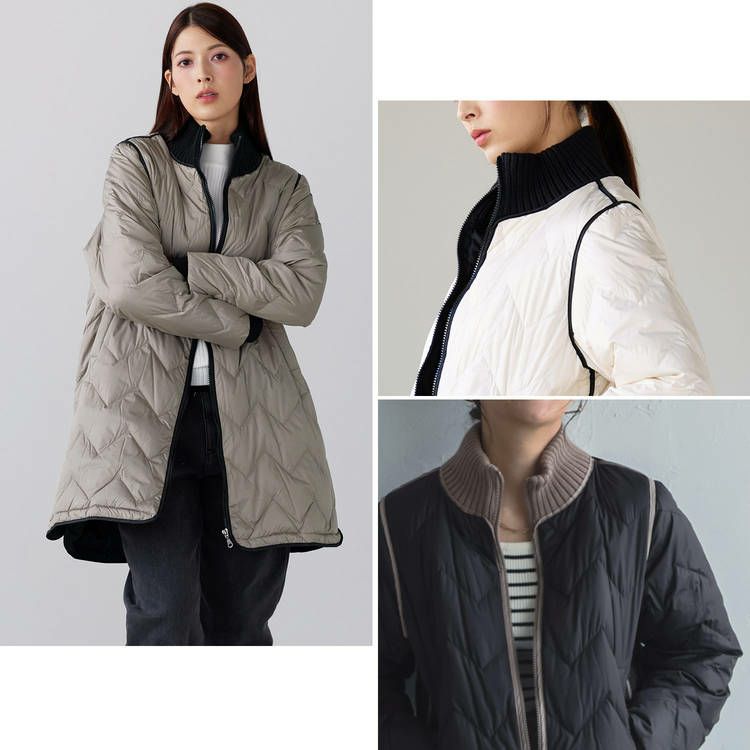 それぞれのカラーに合った2色と異素材を掛け合わせ、大人カジュアルなアウターが完成しました。