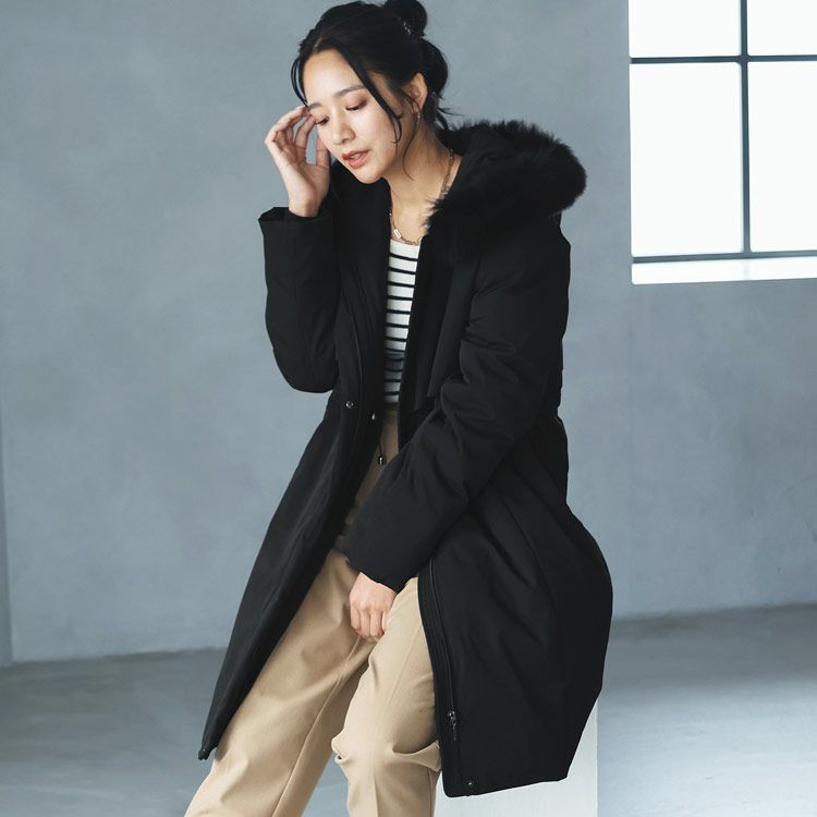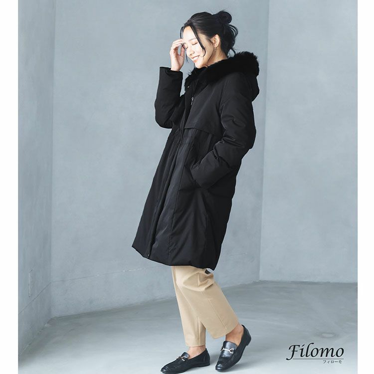 商品名: ダウンコート レディース フード付き ファー 付き フォックス ロング 冬 アウター 軽い 暖かい ブランド Filomo 黒 ダウン80% 30代 40代 50代 秋冬 ファッション ゆったり 大きめ ロング丈 大きいサイズ 通勤 通学