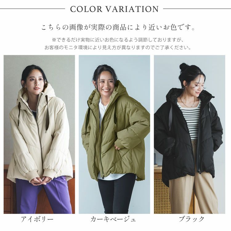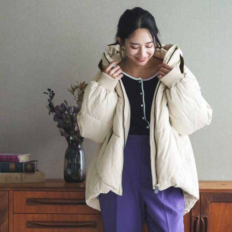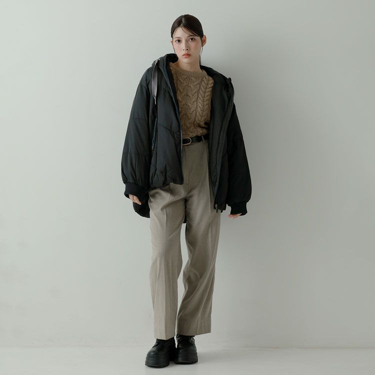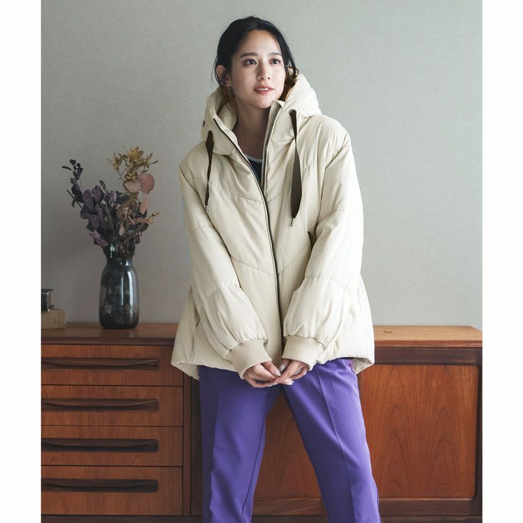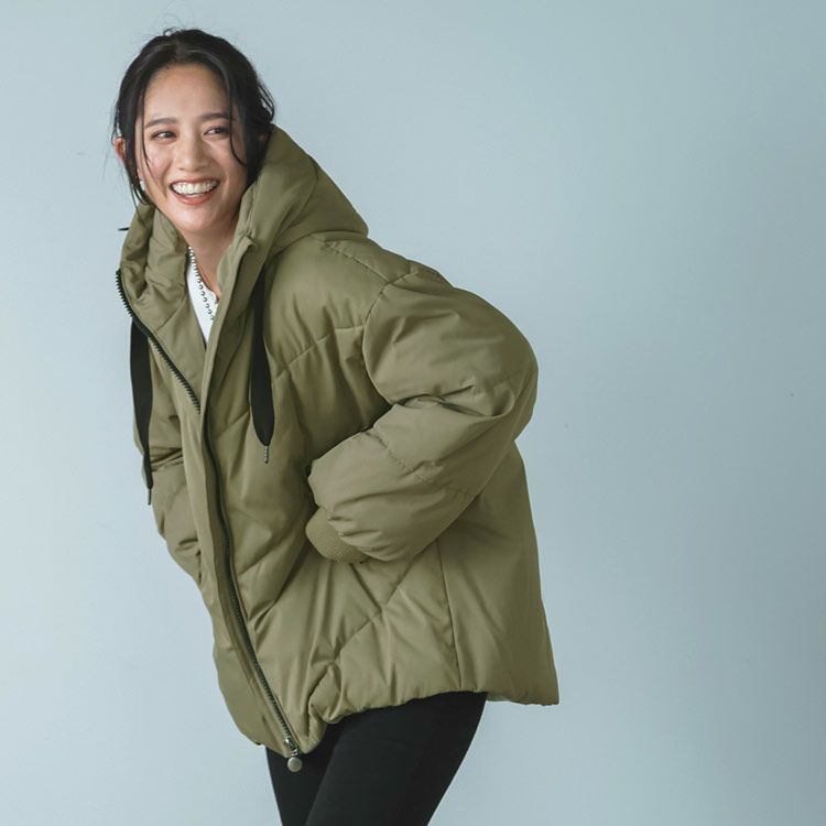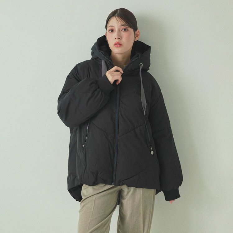 オーバーサイズでゆったりとしたシルエットの中綿コート。