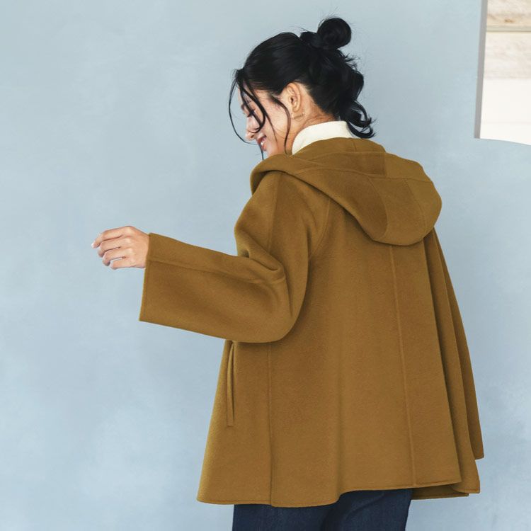 filomo ウール カシミヤ 一枚仕立て フード付き コート アウター ミドル丈 キャメル 大きいサイズ ゆったり フレア シルエット かわいい