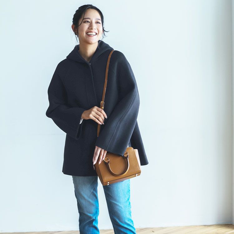 大人かわいい印象にしてくれます。袖口も広がりのある形になっており、中に厚めのニットを着てもかさばる心配はありません。