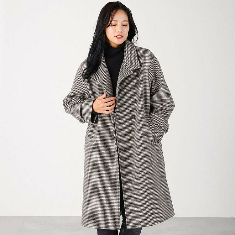 首元までしっかり暖かい、スタンドカラーのロングコート。