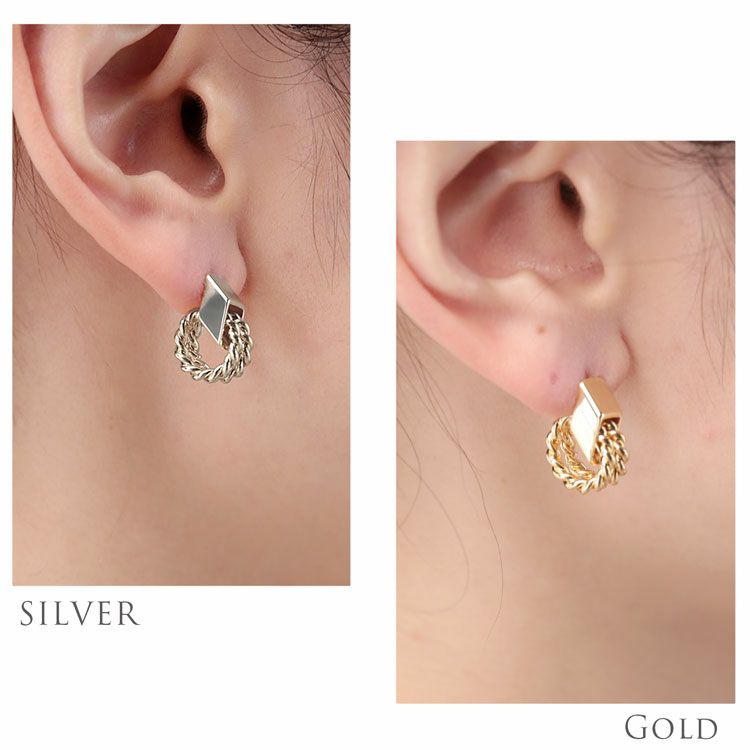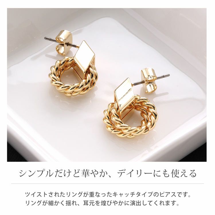 ツイストされたリングが重なったキャッチタイプのピアスです。リングが細かく揺れ、耳元を煌びやかに演出してくれます。