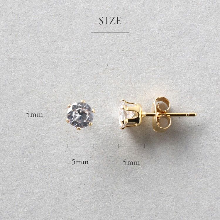 王道1粒ストーンをあしらったキャッチタイプのピアスです。5mmで存在感があり、お顔周りを耳元から華やかにしてくれます。