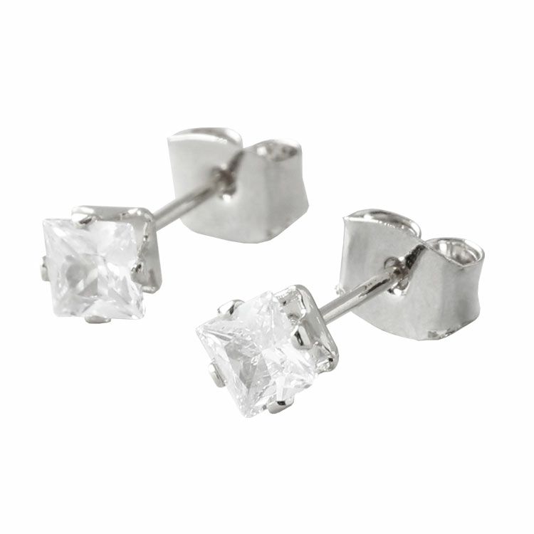 1粒 スクエア ストーン ピアス 4mm ニッケルフリー 低アレルギー 素材 両耳用 金属アレルギー