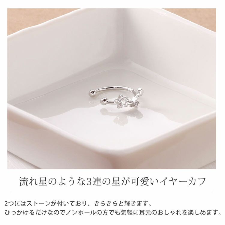3連 スター モチーフ ストーン イヤーカフ ニッケルフリー 低アレルギー 素材 金属アレルギー