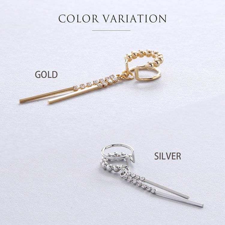 長短異なる長さのスティックが上品に揺れるイヤーカフ。