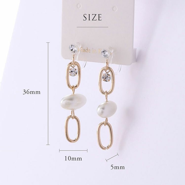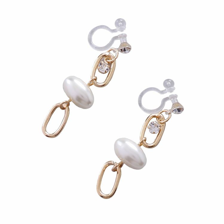 | 商品名:2粒 ストーン ゴールド リング パール イヤリング |