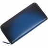 表革には日本職人の手作業によるシャドー加工を施した革を用いています。 型抜きした革1枚1枚に職人の手作業でエアーブラシによって吹き付けを施しています。 端から中央へ滑らかな濃淡を出していく作業は、職人の経験と技術のなせる業です。 硬く見えるデザインですが、使用している牛革はソフトで滑らかな手触りの牛革を使用。 思わず触れたくなる手触りと美しいグラデーションが魅力の財布です。 手に馴染む柔らかな触り心地。 美しいグラデーションが手元をオシャレに飾ります。 内装にMADE IN JAPANの文字が刻印されています。 日本製品の魅力として第一に挙げられるのが「作りの良さ」です。 日本特有の細やかで正確な作業は、 海外の職人には真似る事のできない日本が誇る伝統的な技術の一つです。 また、この緻密で正確な隙の少ない作りにより製品の耐久性が高く、 長く使えるというメリットがあり、世界中から日本製品はリスペクトされています。 開口部はラウンドファスナーで『コの字』型に大きく開きます。 内装は2つの紙幣入れと片マチファスナーの小銭入れで構成されています。 内側の前面と背面にカードホルダー×6とワイドポケット×1がそれぞれ付いています。 中央の小銭入れは片マチで大きく開き、小銭が取り出しやすい工夫が施されています。 専用の箱に入れてお届けします。 プレゼントにもおすすめのアイテムです。