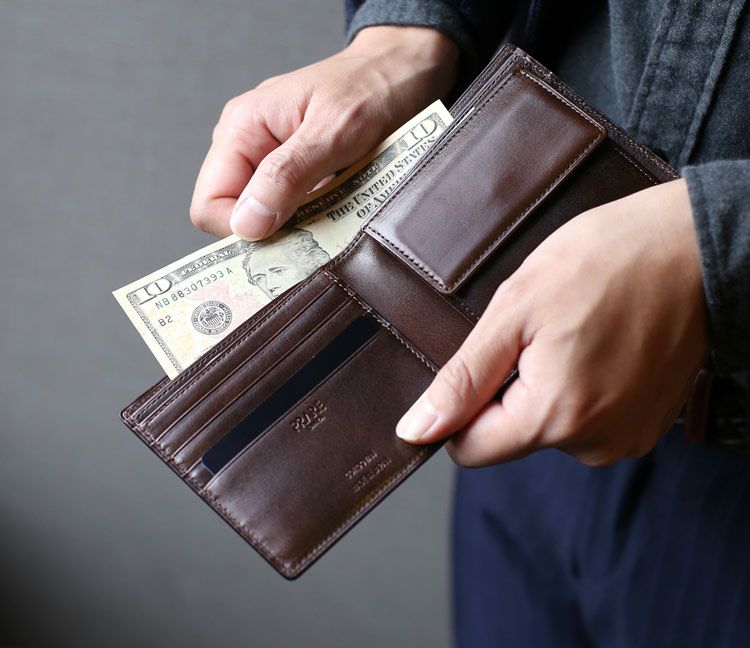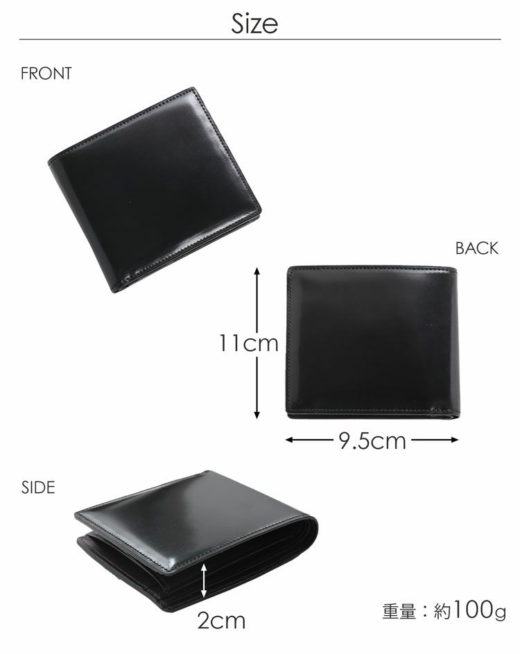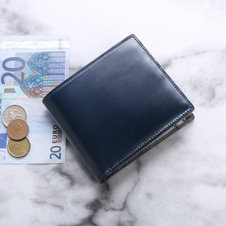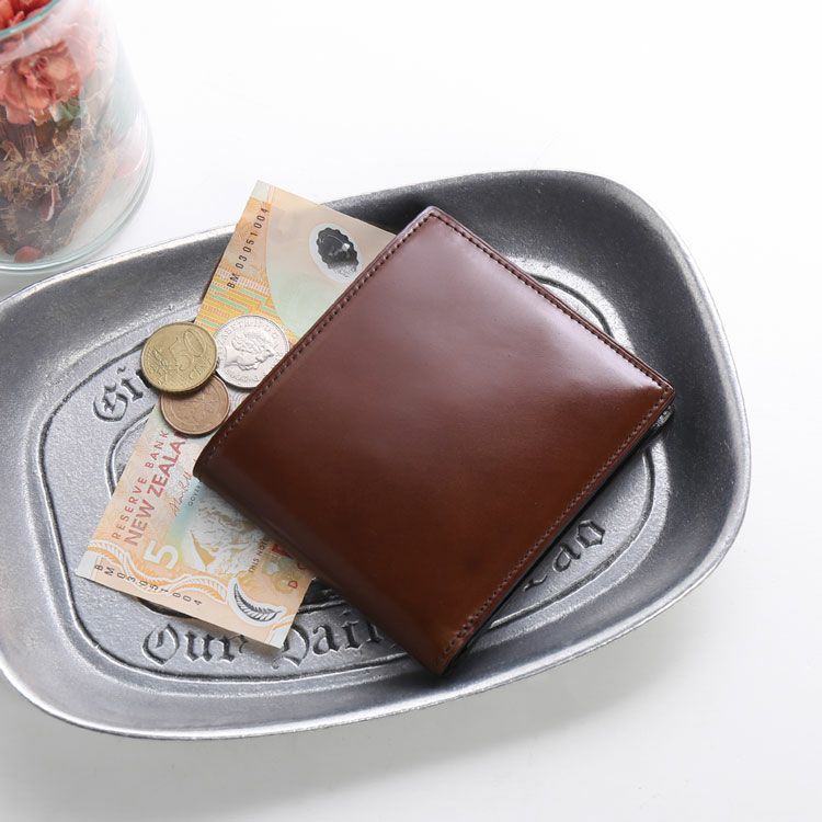 無駄な装飾の無いシンプルなデザインで、コードバンの素材感が生きた財布です。