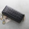 クロコダイル型押しの牛革を使用したラウンドファスナー長財布。