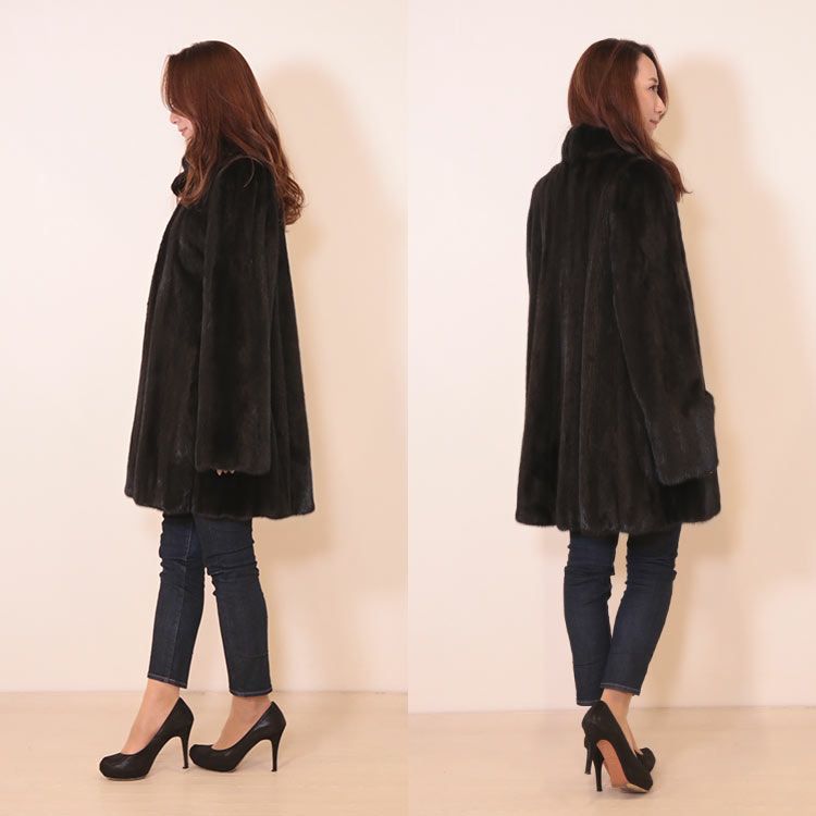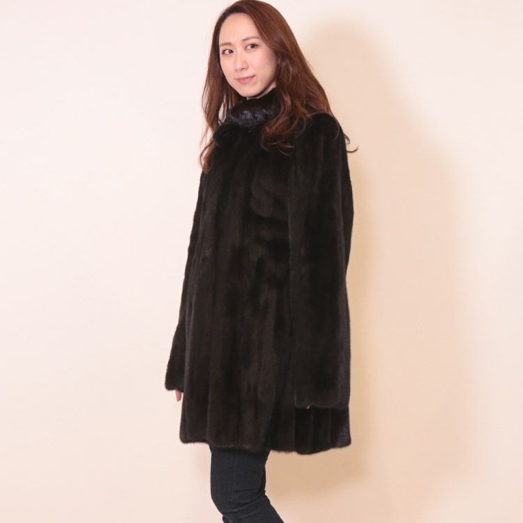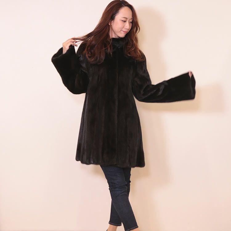 | 商品名:【1点限り】スカンブラック ミンク コート 毛皮 レディース (101009-1r) |