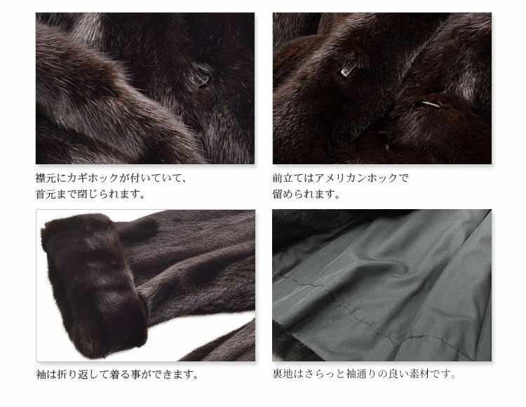 | 素材 | 毛皮:ミンク 内側:ポリエステル100% |