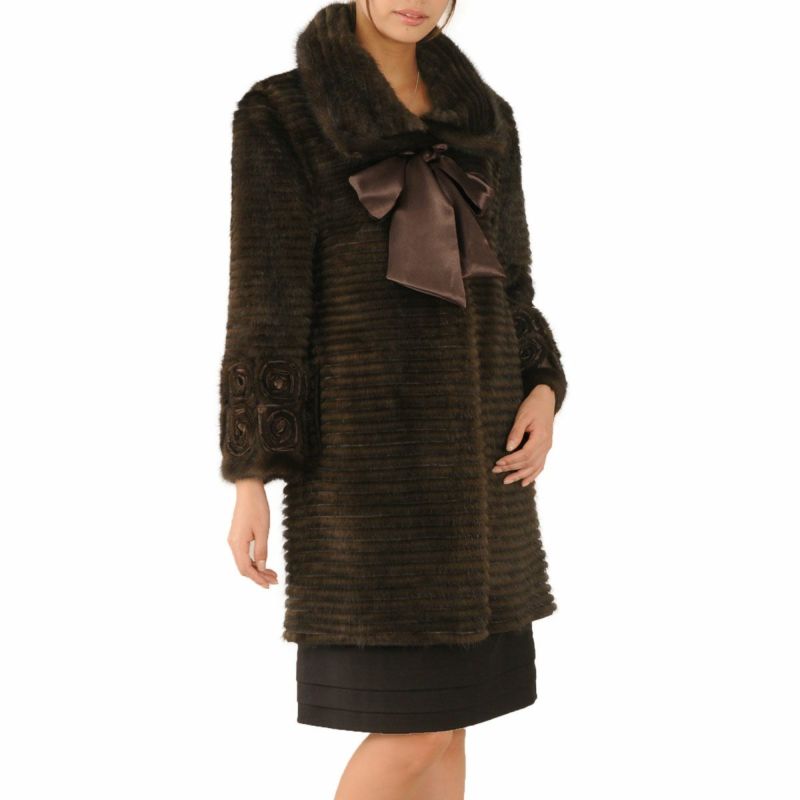 ミンク カシミヤ混 コート リボン フラワー デザイン 7F