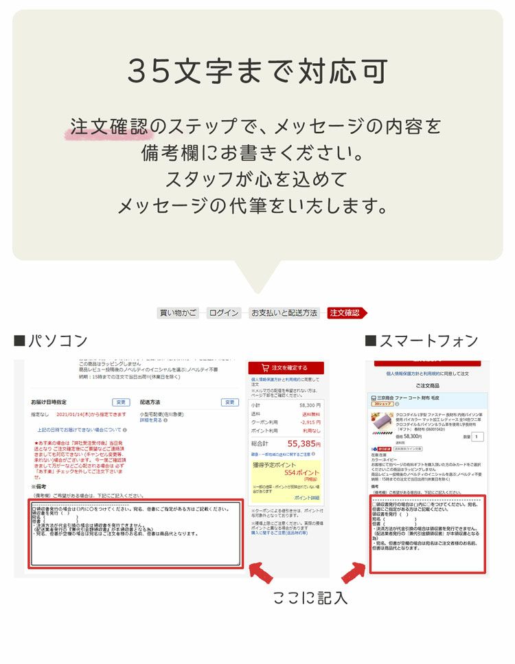 ご希望のメッセージを、スタッフが心を込めて代筆します。※備考欄にご希望のメッセージをご入力ください