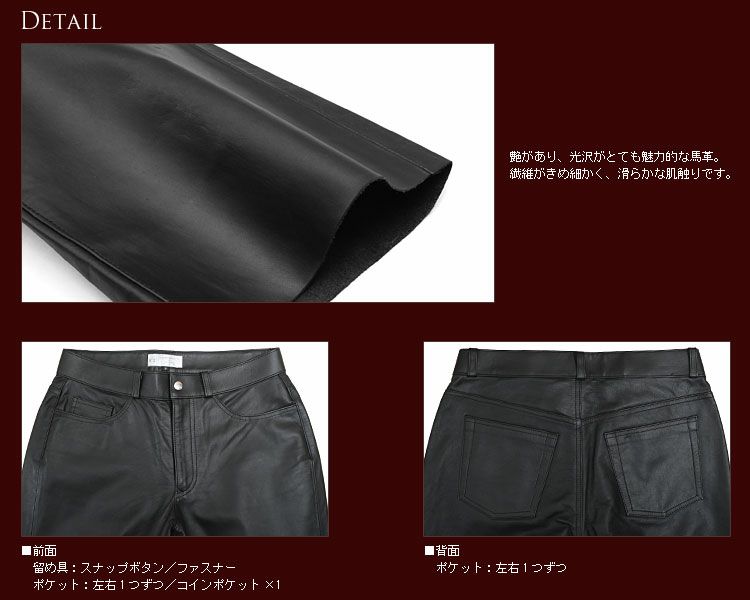 馬革 メンズ パンツ 5ポケット ポニーレザー レザーパンツ 7F