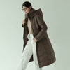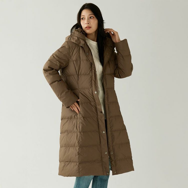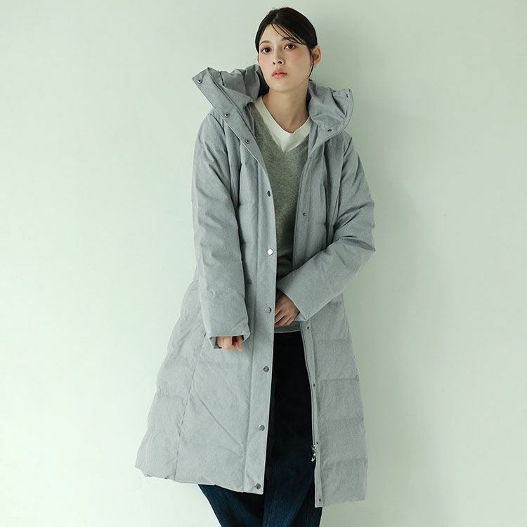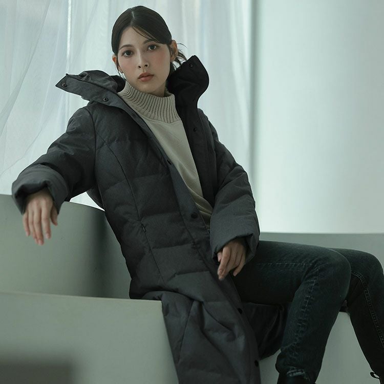 膝が隠れる100cm丈で上質ダウン90%を使用したダウンコートです。
