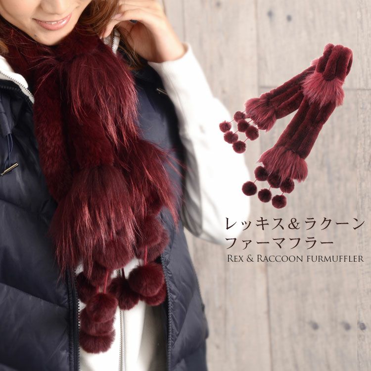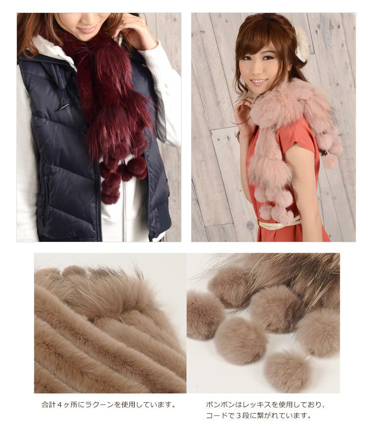 レッキス&ラクーンファーボンボン付きマフラー(No.308231) |