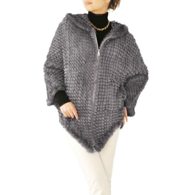 ミンク ケープ ジャケット 編み込み フード付 7F