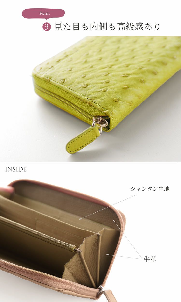 2. オーストリッチ ラウンドファスナー 長財布 レディース 4FA【ネコポスで送料無料】