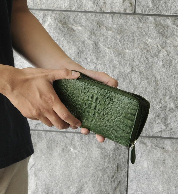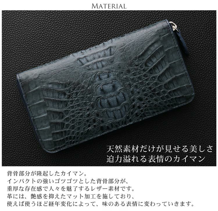 | 商品名:カイマン レザー 長財布 マット加工 ラウンド ファスナー メンズ |