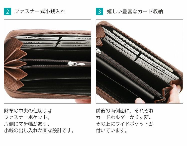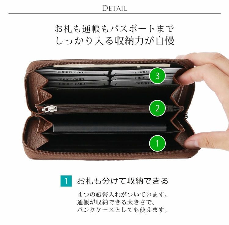 ラウンドファスナー/通帳が入る/カード12枚収納