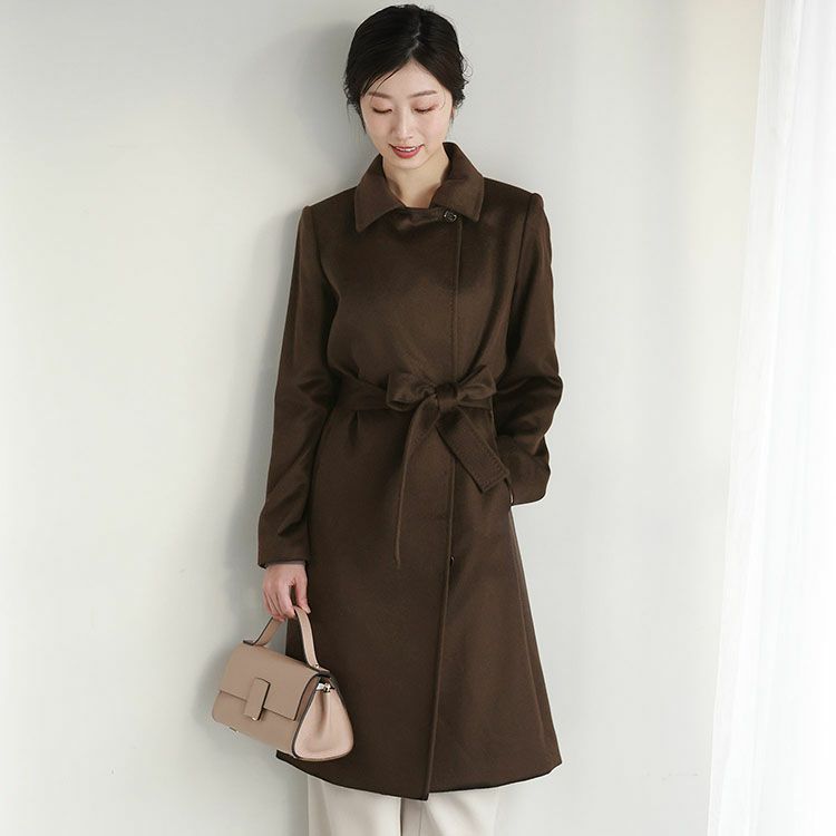 上品で大人っぽいきれいめデザインのカシミヤロングコート。