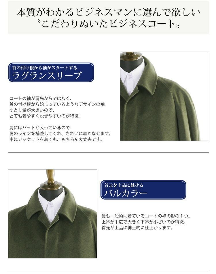 本質がわかるビジネスマンに着て欲しい、一つ上をいくラグランコートです。