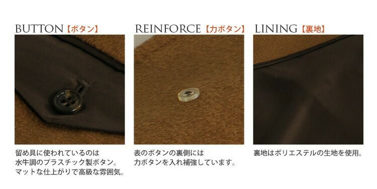 | 素材 | 表地:カシミヤ43% ウール57% 裏地:ポリエステル100% |