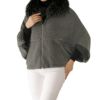 ボリュームのあるラクーンをトリミングした、ケープジャケットです。