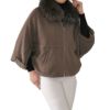 カシミヤ混 ニット ケープ ドルマン ケープジャケット ラクーンファートリミング レディース キャメル/グレー/モカ 秋 冬 女性 マント ギフト