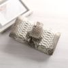 パイソンレザー(蛇革)は柔らかで軽いのが魅力で財布などの素材としてはとても優秀な爬虫類の本皮です。ヘビ柄が独特な模様を描くダイヤモンドパイソンや、世界的にも流通の多いモラレスパイソン、ヤスリヘビやウォーターパイソン、スネークなど様々な種類のヘビ革があり、その存在感が人気のエキゾチックレザーです。男性女性問わず根強いファンが多く美しい鱗もようが魅力のポイント。かっこいい印象のベリーカットから上品な佇まいのバックカットまで革の取り方でも雰囲気が変わる表情豊かな素材です。使い込むほどに手に馴染む経年変化(エイジング)も楽しめるリアルレザーなので、デイリーに使う財布や革小物にへび革を加えると、いっそう愛着の湧くアイテムへと育ってくれます。普段どおりに使用していればウロコが剥がれたりすることも無く、丈夫で長い間使い込むことが出来ます。金運などの縁起物としても人気が高く、世代を問わず愛される蛇革の財布やレザー小物をご堪能いただければと思います。