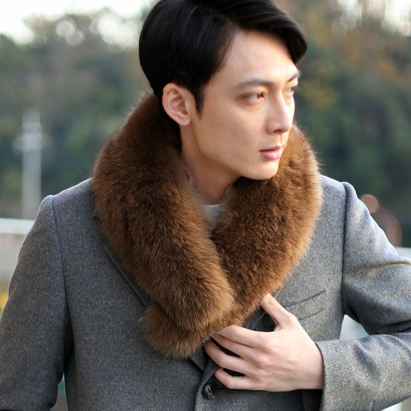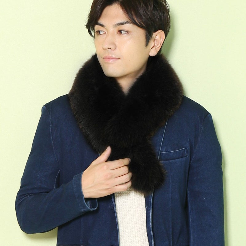 フォックス ファー マフラー メンズ FOX カラー ストール 秋冬 全7色 ふわふわ 毛皮 リアル ファーマフラー 男性 プレゼント ギフト 男女兼用 暖かい おしゃれ 彼氏 ギフト【レビュープレゼント対象】 7F (8007-mens-1r)