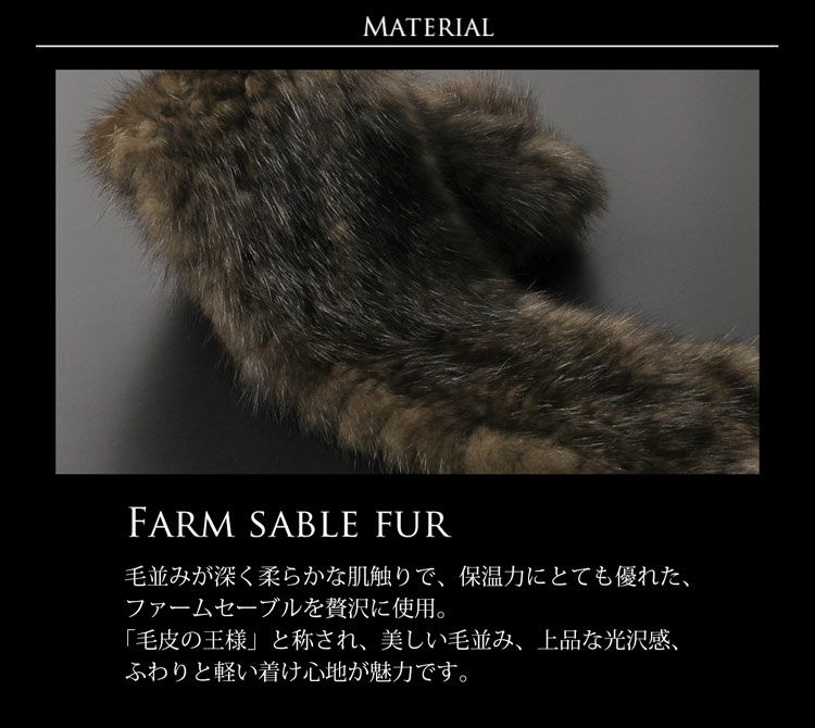 毛並みが深く柔らかな肌触りで、保温力にとても優れた、ファームセーブルを贅沢に使用。