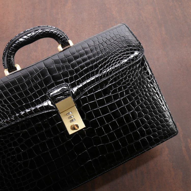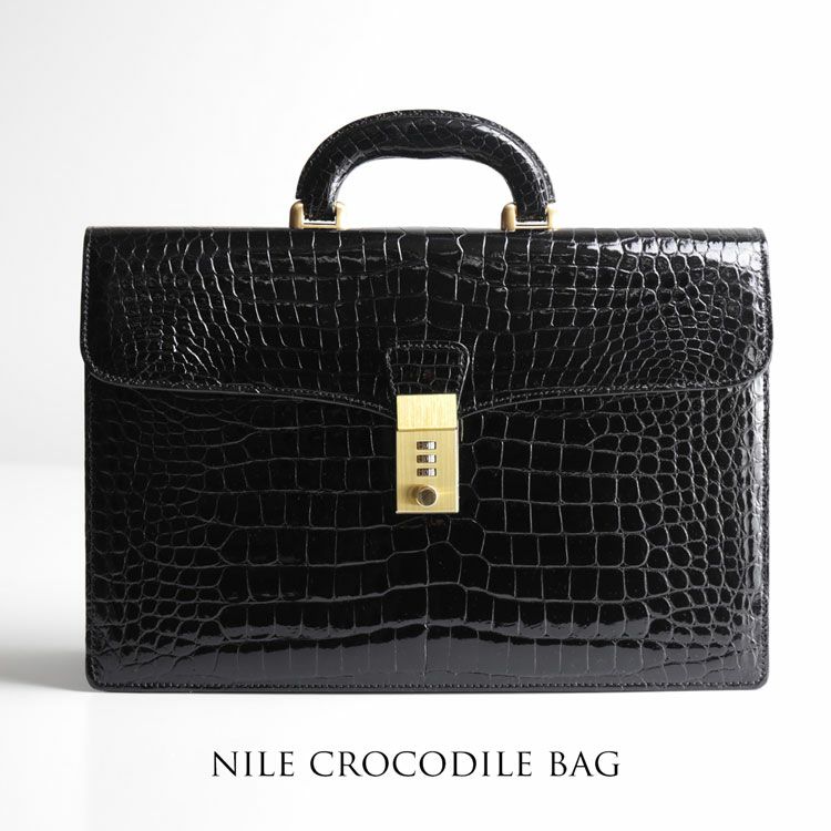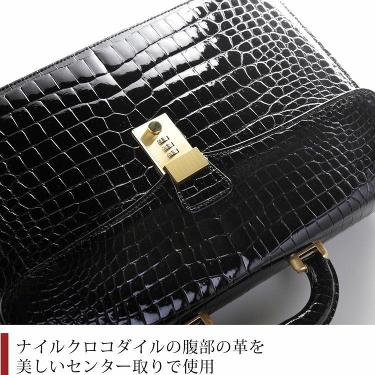 天然皮革 エキゾチックレザー クロコダイル ビジネスバッグ メンズ ダイヤルロック 日本製 センター取り シャイニング 本革 A4 対応 36cm 安心 保証書 付き 鍵付き ブリーフケース 通勤 仕事 オフィス カジュアル プレゼント ギフト mensbag