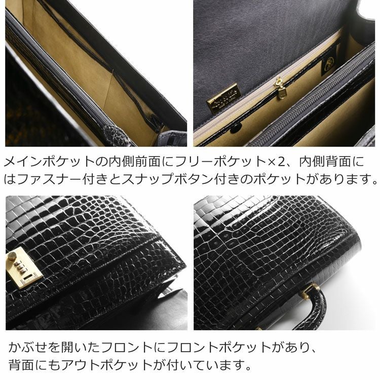 | 商品名:クロコダイル ビジネスバッグ メンズ ダイヤルロック 日本製 センター取り シャイニング 本革 ハードハンドル A4 対応 保証書 付き |