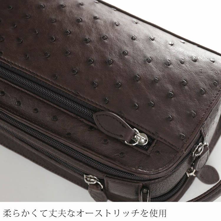 オーストリッチ セカンド バッグ Wファスナー / メンズ 4FB