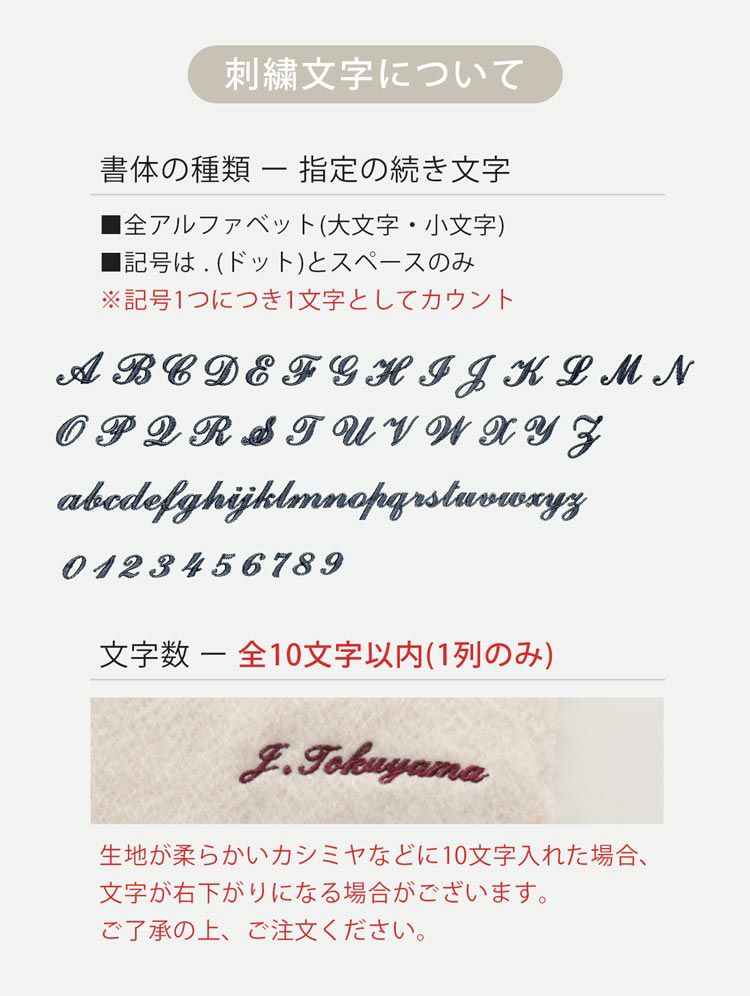 名入れ刺繍 対象のマフラー・ストールと合わせてご購入ください。 【最大10文字まで】【発送まで最大16日】 (naire-sisyur)