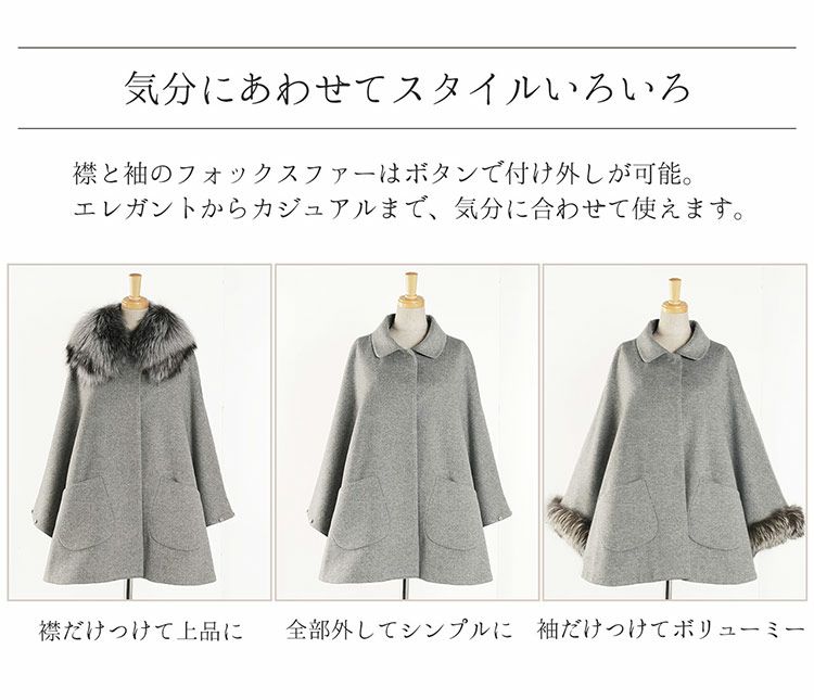 他の画像を見る Filomo Filomo フィローモ カシミヤ 混 ケープ ファー トリミング フォックス ウール混 レディース カシミヤ 7F ¥ 55,000 税込 4.00 (1件) お気に入りに登録する