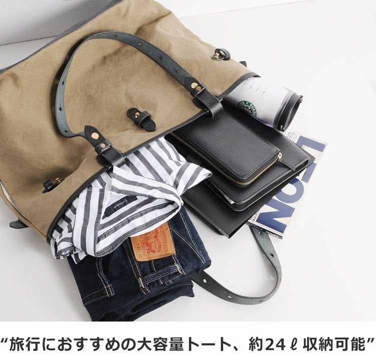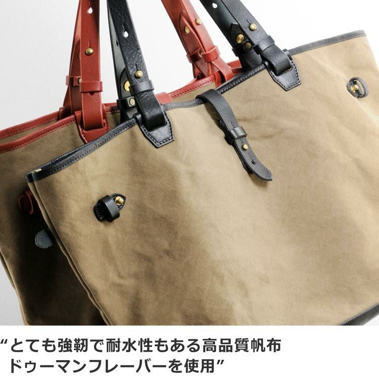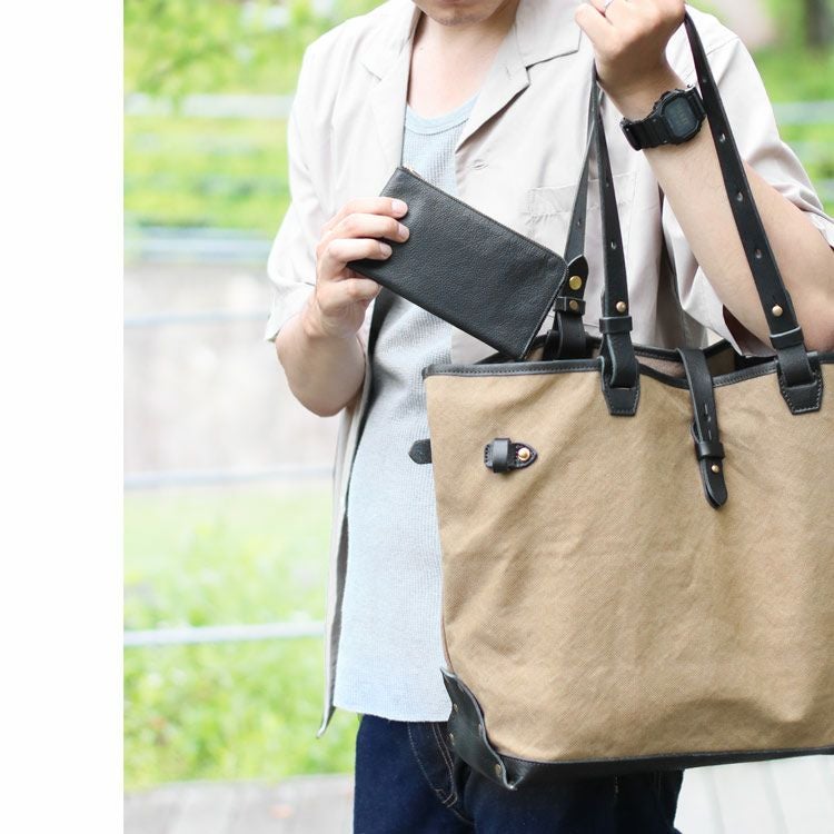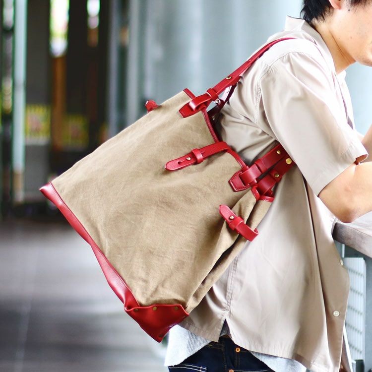 表側:キャンバス生地(帆布)、牛革(ヌメ) 内装:キャンバス生地(帆布) |