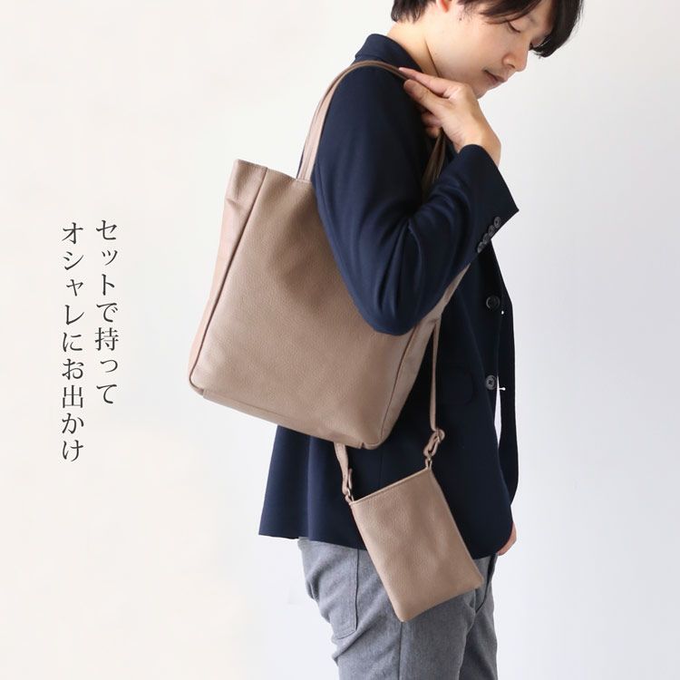 同じレザーを使用したトートバッグとスマホポーチがセットになった親子バッグ。